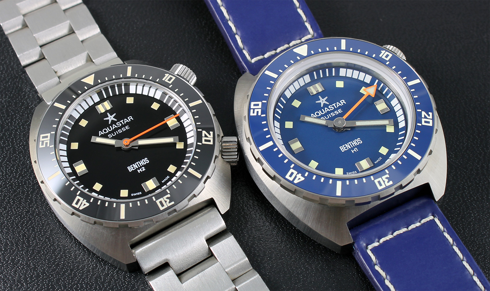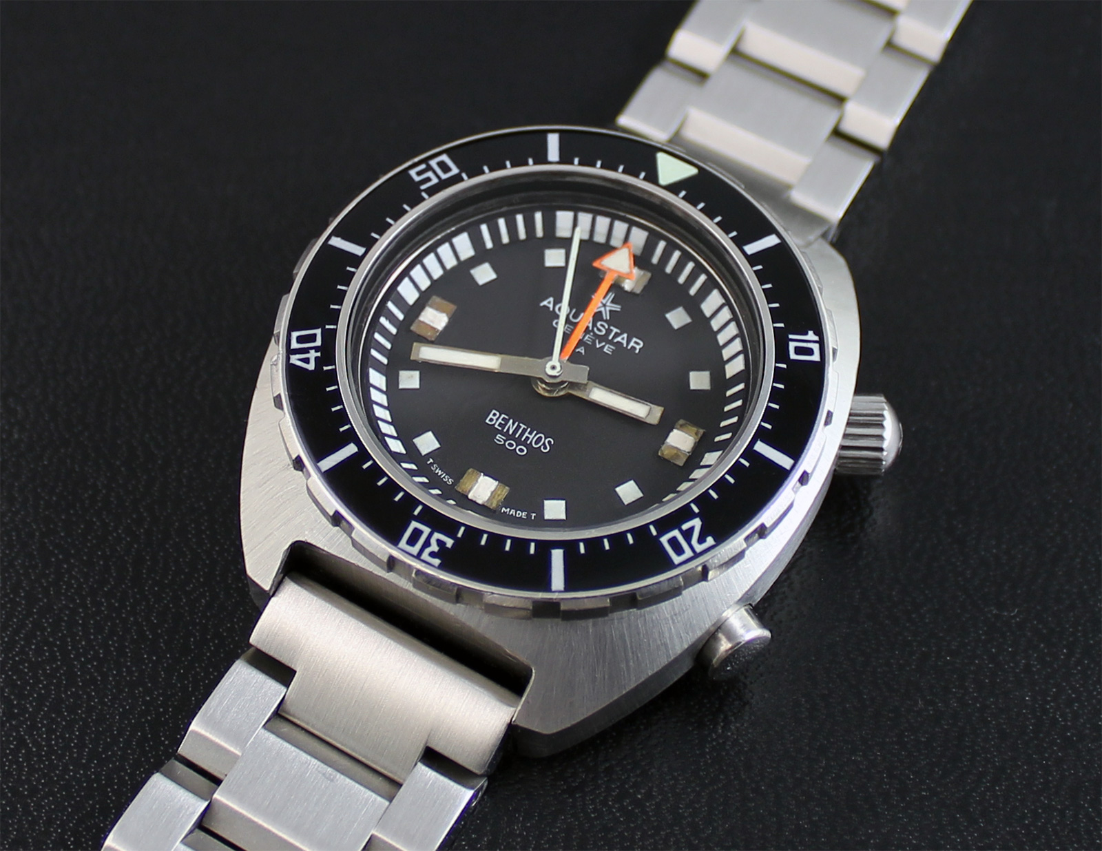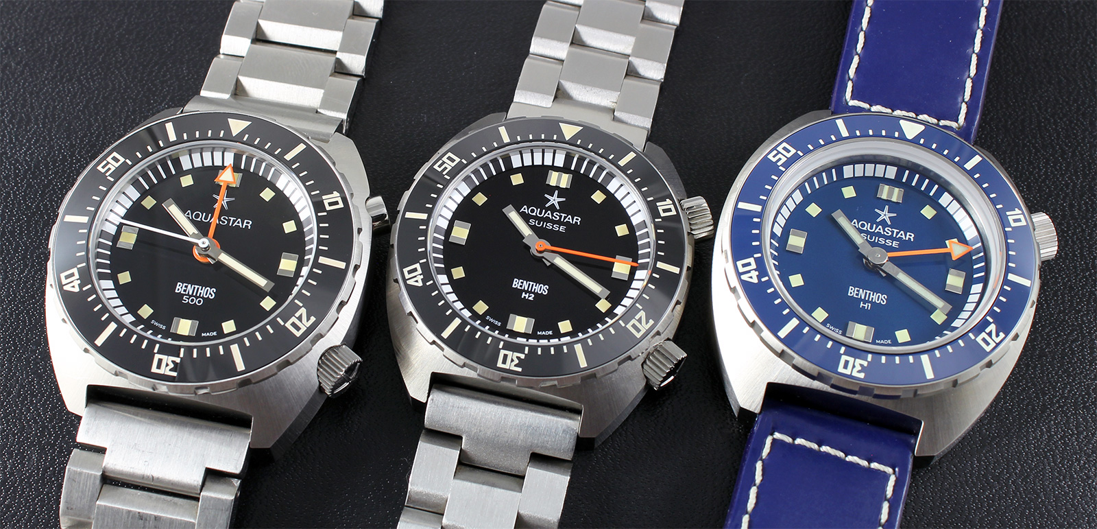It probably will be no surprise to anyone when I say that I get asked lots of questions about Aquastar watches. After numerous reviews and two books and considering myself as the “Aquastar Guy”, questions come with the territory. Many of those questions are about the Benthos. The Benthos family has grown considerably. Initially comprising of the vintage watches: Benthos 500 (2 versions), Benthos I and Benthos II, the modern versions: Benthos H1, Benthos 500 Founder’s Edition and now the Benthos H2 have been added. With the release of the new Limited Edition Blue version of the Benthos H1, I thought it was time to answer some of the questions I have been asked in a more formal and enduring way. I will consider the vintage Benthos 500 and the modern Benthos versions. I’ve already done full reviews of all of them on this site so I won’t be going into detail. If you do want to know more about the watches here, then when you have finished with this go and read my reviews. There are lots of photos and who doesn’t like lots of watch photos! I’m not including the vintage Benthos I and II here. One, because I don’t have them and, two, they are a different case design. So, grab a coffee, sit back, relax and enjoy the read.