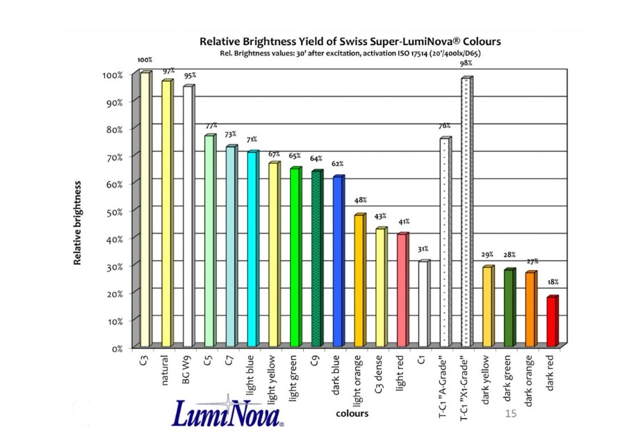 Aquastar has been fairly consistent in its use of “Light Old Radium” color lume on its watches. Some people like it, some people don’t. I’ve definitely moved into the second group. If you have my: Anatomy of a Design, Aquastar book you will have read the chapter on luminous material and it’s development. The later part of the chapter revolves around the following image. It shows many of the colors that Super-LumiNova is available in and their relative brightness. “Light Old Radium” is not shown in the table but would sit near to the C1. It has an slight orange hue in daylight which gives it a vintage look. The afterglow turns into a yellow-green hue. It is around the C1 level of intensity.